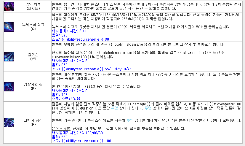안녕하세요 ㅎㅎ 이번에 소개해 드릴 챔피언은 현 메타에서 미드 최정점을 달리고 있는 '탈론'입니다.